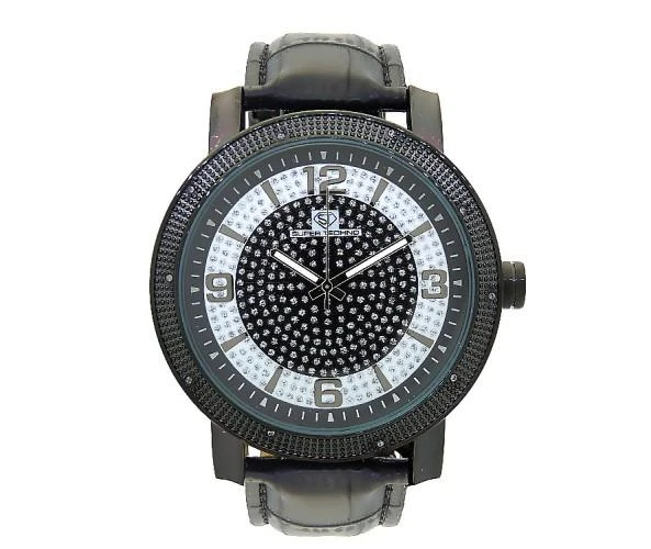 Super Techno offers the hottest hip hop diamond watches. This beautiful watch has 10 genuine diamonds around the bezel. Black hip hop jewelry is very popular. This black hip hop watch is sure to turn heads. For a very affordable price you can have your very own real diamond hip hop watch. It is very heavy built and designed to last. It has a hard sapphire crystal to resist scratching and breaking. The time is powered by a high end Japanese quartz movement. This watch comes with a box and 2 extra watch bands.Manufactured by Joe Rodeo, A Revolution in Diamond Watch manufacturing. HipHopBling.com is an Authorized Distributor of Joe Rodeo Diamond Watches, JoJino Watches, and Super Techno Diamond Watches. This Super Techno Diamond timepiece features: