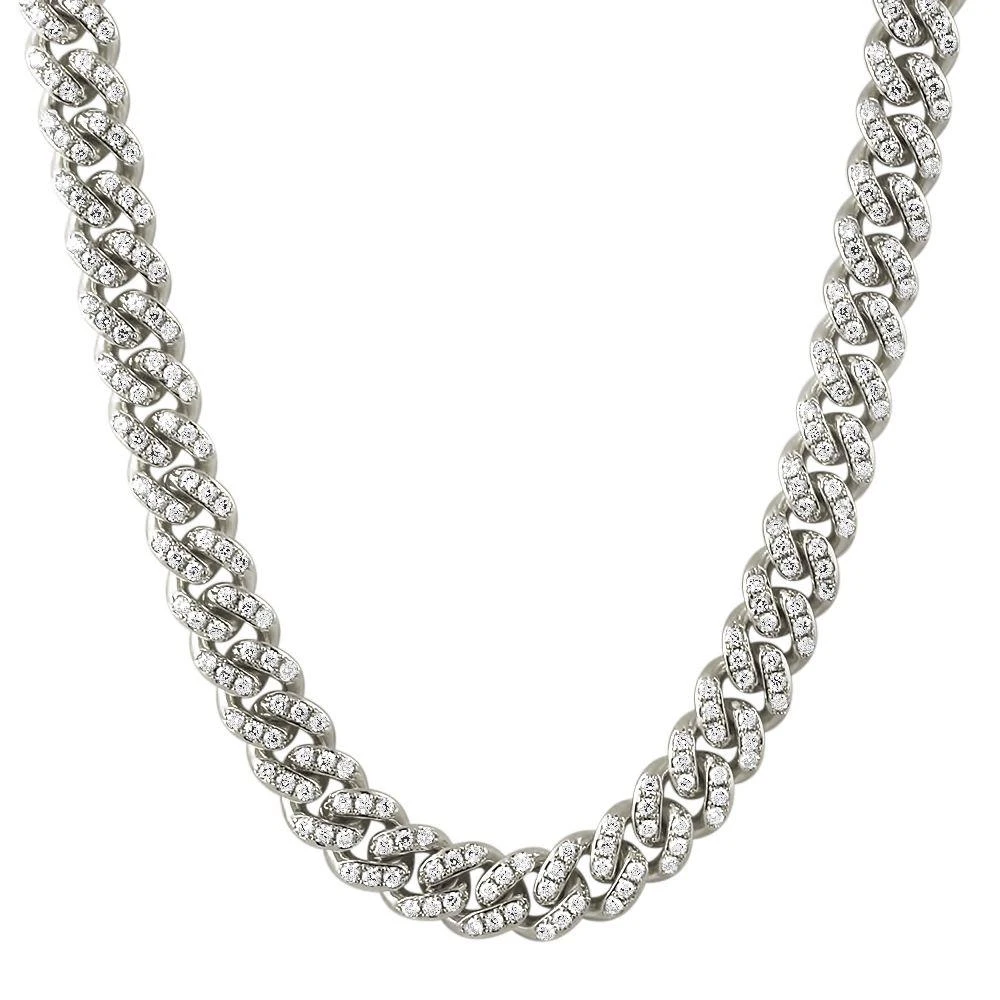 Tennis Miami Cuban CZ Bling Bling Chain. Popular Style with shiny Simulated Diamonds prong set on every link. Top quality Simulated Diamonds and bold style that will keep you shining in the club and other exclusive events. Highly detailed with intricate details and stone setting. All stones are VVS Simulated Diamonds that are prong set.