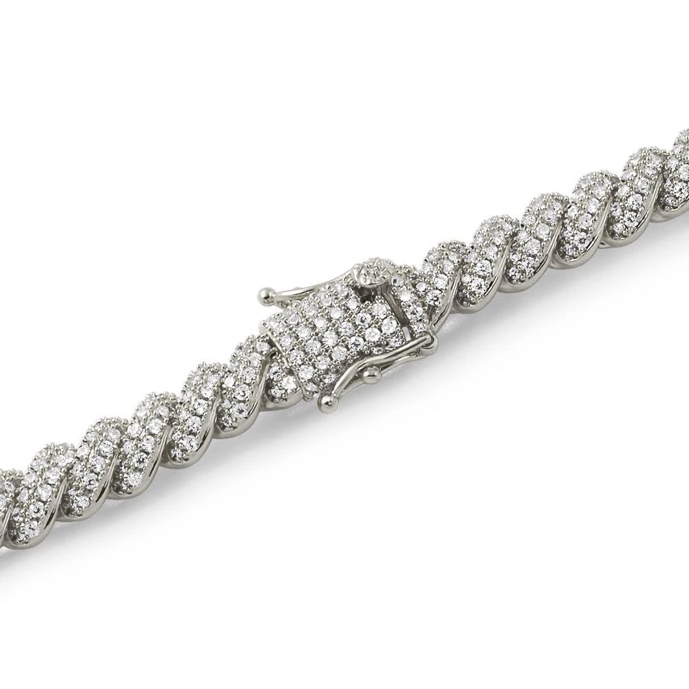 Twisted Rope Iced Out Hip Hop Bracelet. Unique Style Bling Bling Bracelet. Incredibly icy with VVS simulated diamond stones lighting up your wrist with the best shine possible. This iced out Bracelet shines like genuine diamonds. All hand setting, no glue. Shine with the best hip hop jewels in the game.