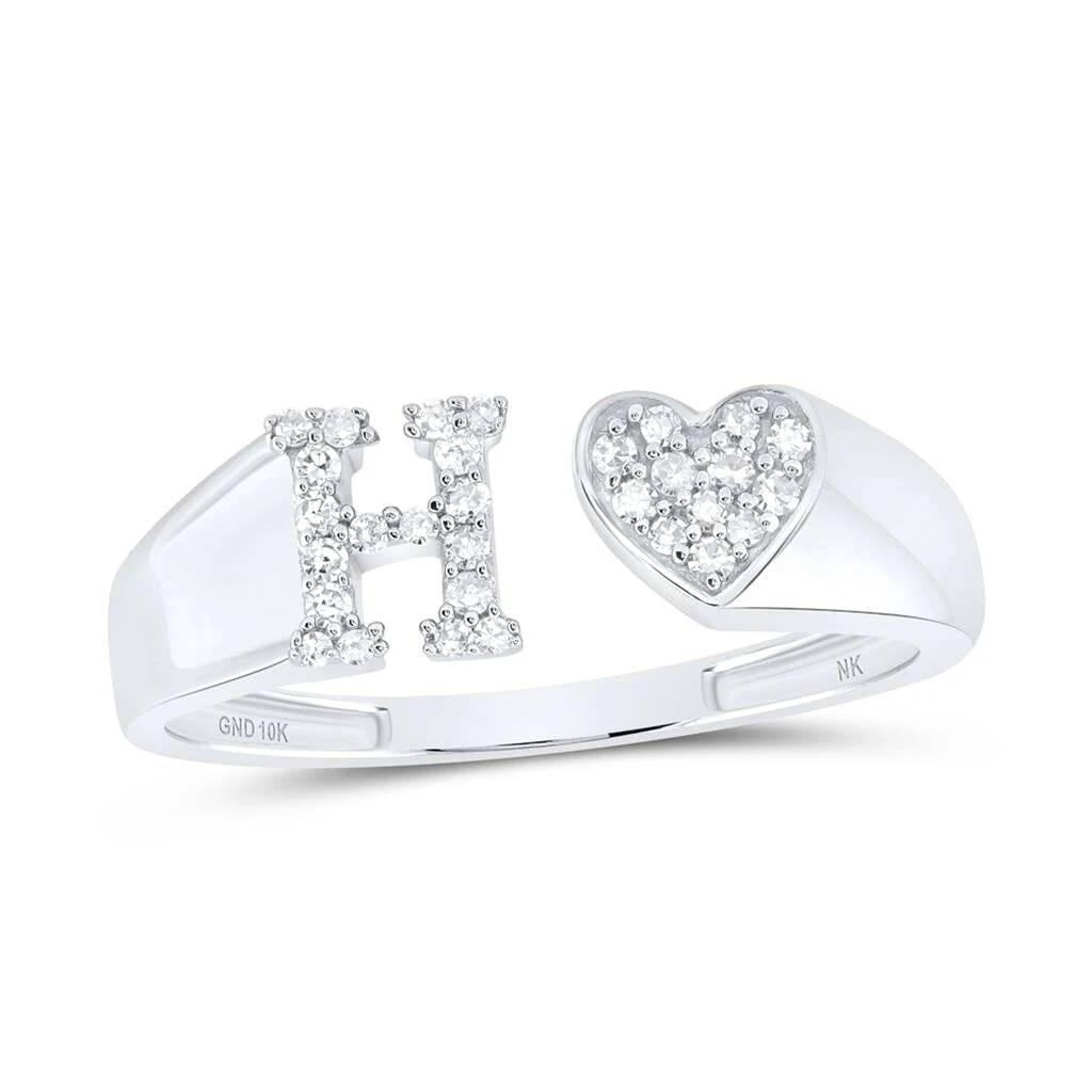 Womens Initial Letter Heart Diamond Ring 10K Gold. Uniquely crafted Diamond ring to personalize your look. Precision detailed prong Diamond Setting on this Diamond iced out ring. Beautiful timeless look. Popular style Hip Hop Bling Bling Ring is crafted with solid 10K Gold and Genuine Natural Diamonds.