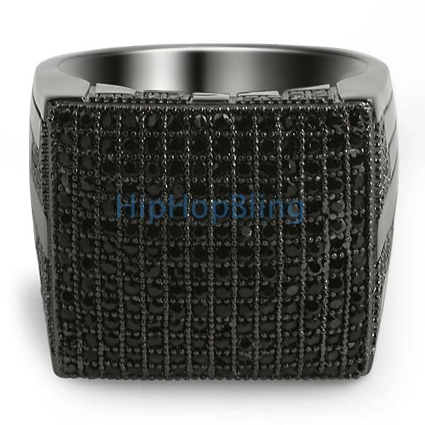 This Mega Icey Black Micro pave ring is amazing. The entire front is covered in 14 rows of faux black diamonds. So blingy and even some of the ice looks like it’s dripping down the sides. This is a one of a kind custom looking hip hop ring. This bling bling ring looks and feels like a real diamond ring. All stones are lab created and micro pave prong set into the ring for a genuine look. Black dipped for an amazing shine to match your blingy diamond simulated stones. This is an unbeatable value for such a high quality iced out ring. Choose from sizes 7-12 for the perfect fitting bling bling ring. Get yours today at HipHopBling.com and shine like a million bucks.